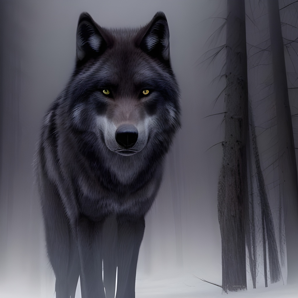 In the heart of a mist-laden forest, a black wolf materializes with an air of enigmatic grace. Its sleek fur absorbs the shadows, blending seamlessly with the obsidian ambiance. Ears raised in alertness, the wolf’s intense gaze pierces the veil of mist, fixated on an unseen horizon. Sinewy muscles ripple beneath its coat as it emerges, an embodiment of primal wilderness. The haunting stillness is broken by the wolf’s silent presence, an emissary from the nocturnal realm, commanding the mystery of the dark woods with its captivating, onyx allure.