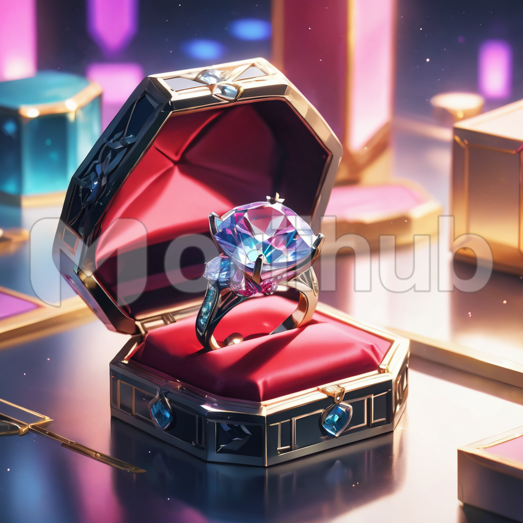 A dazzling diamond ring rests inside a luxurious velvet box, a symbol of everlasting love and commitment. Its brilliant, sparkling facets capture the light, radiating a mesmerizing allure that hints at a promise of forever. This precious token of affection holds the potential to make hearts skip a beat and create cherished memories for a lifetime.