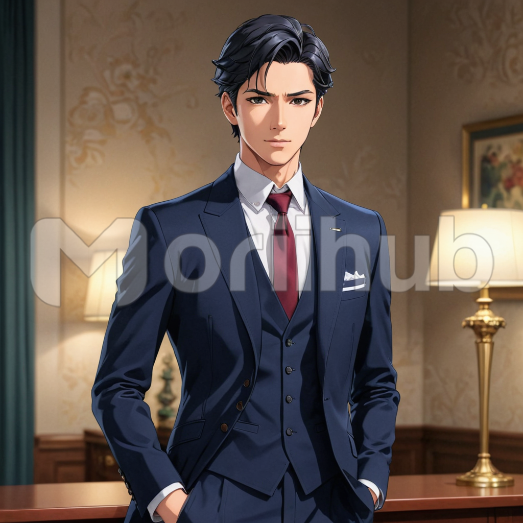 A man stands indoors, his hands casually tucked into the pockets of his suit, exuding an aura of composed contemplation. He gazes ahead with a thoughtful expression, lost in focus. His suit, tailored to a seamless fit, speaks of understated elegance. Behind him, a lamp casts a soft, warm glow, illuminating the space with a subtle radiance that enhances the tranquil atmosphere. The surrounding environment is minimalistic, emphasizing the man’s presence as he stands alone, enveloped in the gentle light and serene quietude of the room.