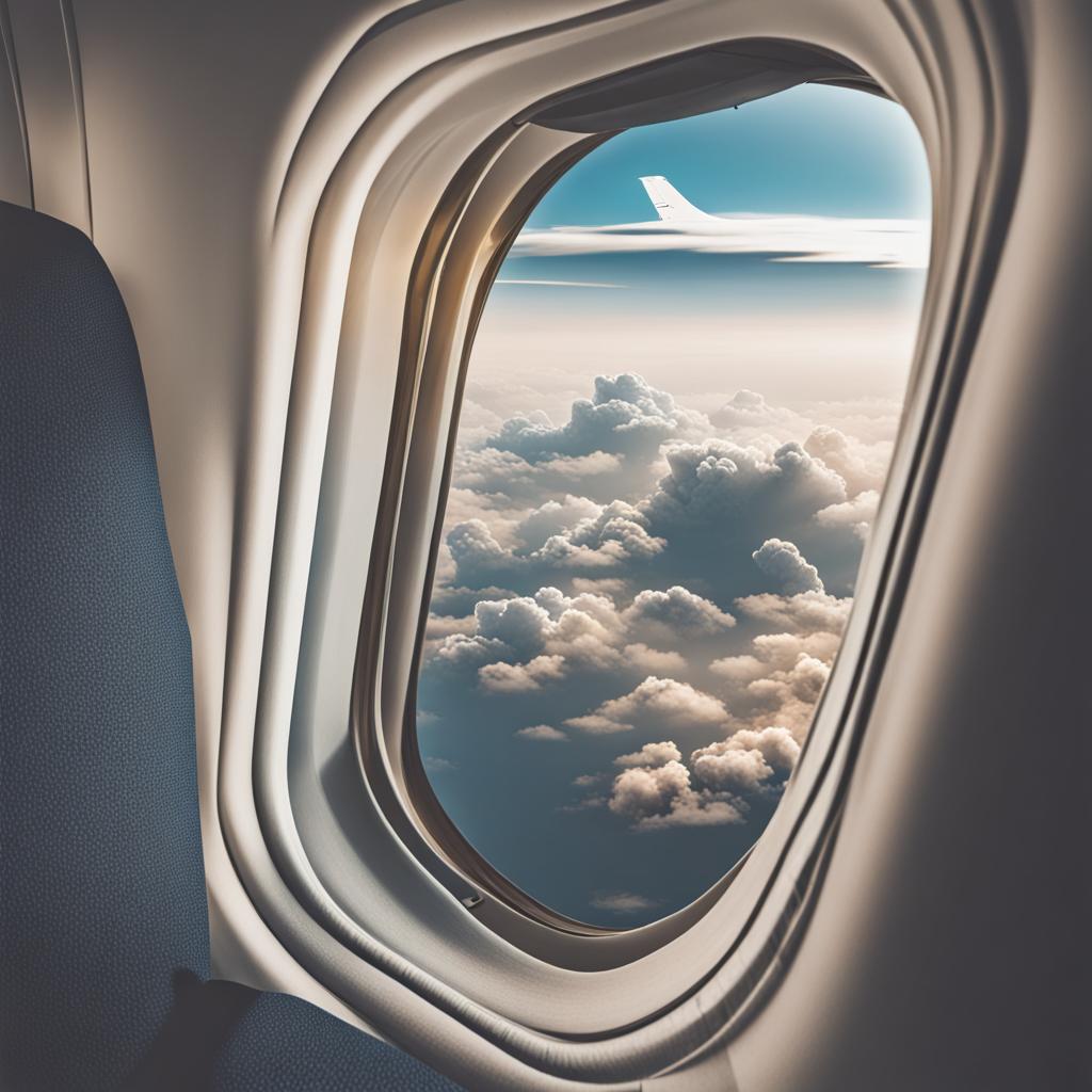 Peering through the airplane window, the world below unfolds like a living tapestry. Wispy clouds cast shadows on an azure canvas, while distant landscapes blur into abstract patterns. Tiny rivulets of rivers, patchwork fields, and geometric city layouts create a mesmerizing spectacle, as the aircraft gracefully cruises above the vast expanse.