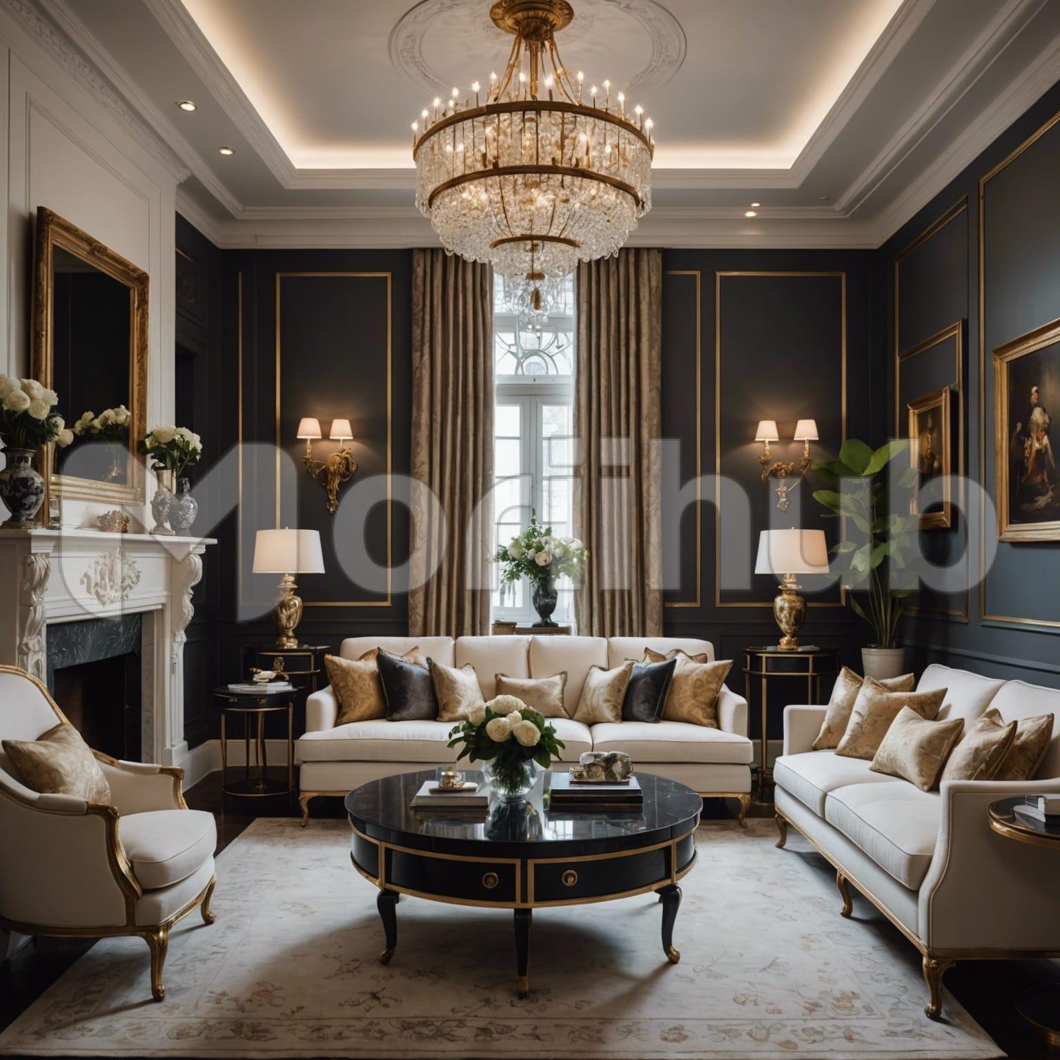 Amidst the living room’s embrace, plush couches offer comfort, their inviting curves beckoning relaxation and intimate conversations. A coffee table, adorned with cherished mementos, anchors the space, a focal point for shared moments. Above, a dazzling chandelier casts a soft glow, infusing the room with an aura of elegance and refinement. Lamps nestled in the corners add to the ambiance, their gentle illumination weaving a tapestry of warmth and tranquility. In this harmonious tableau, the living room becomes a sanctuary, where comfort and style converge in perfect harmony.