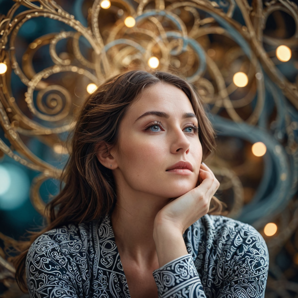 Lost in thought, a woman rests her head on one hand, chin gently propped, her eyes distant yet contemplative. In this moment of introspection, the world around her fades into the background as she delves into the depths of her own mind. Each furrow of her brow tells a story of pondering, of wrestling with ideas and emotions. In her solitude, she finds solace, seeking clarity amidst the tumult of her thoughts.