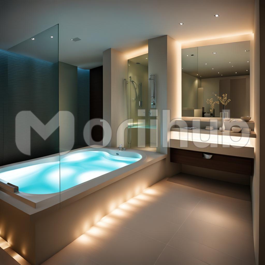 In the lap of modern luxury, a jacuzzi bath beckons with indulgence. Soft lighting bathes the sleek contours in a gentle glow, creating an ambiance of relaxation. The bubbling water invites serenity, and the contemporary design exudes sophistication. As one immerses in the warm embrace, the subtle play of light and the soothing hum of jets combine, transforming the experience into a tranquil escape, a moment of blissful repose amid the modern comforts of a private spa oasis.