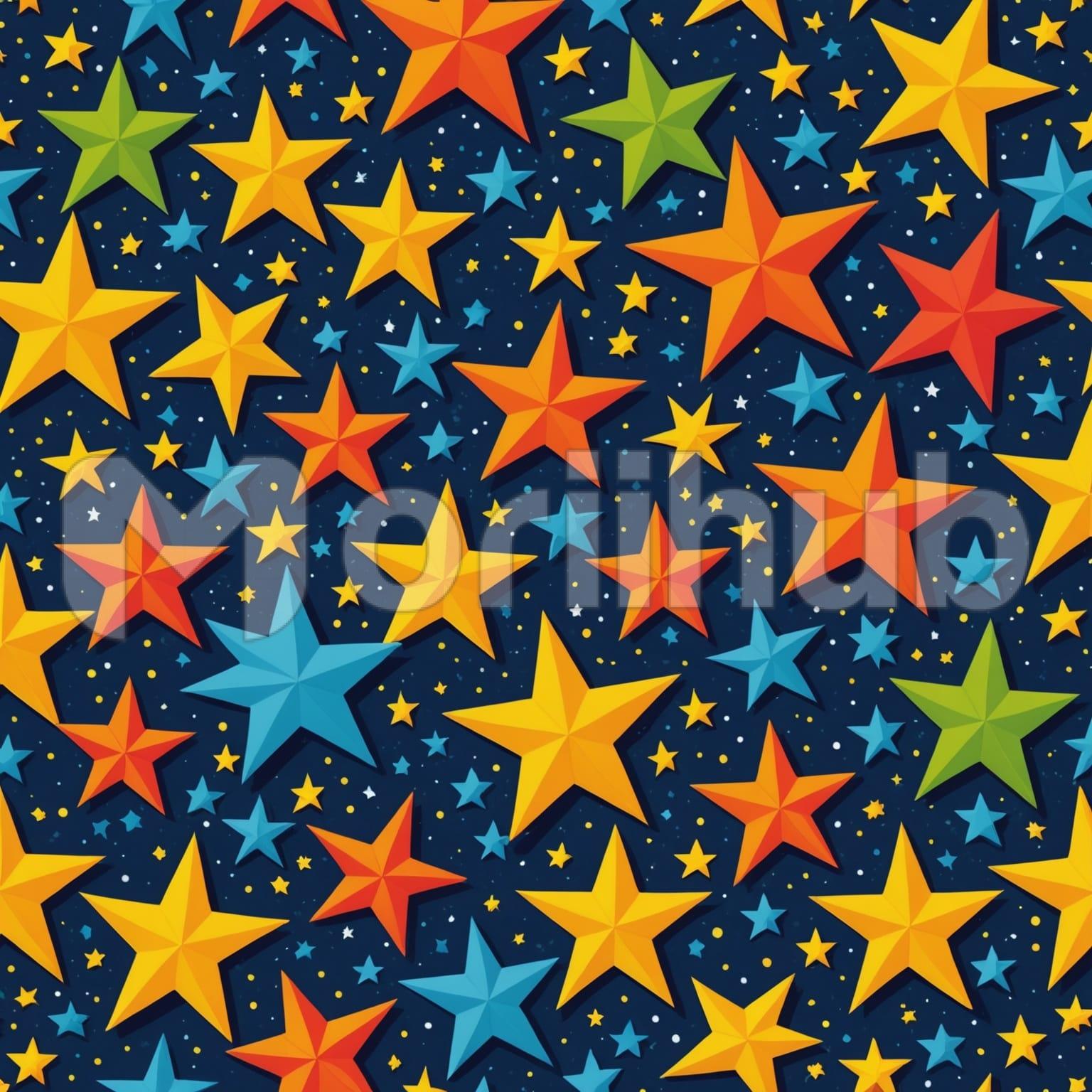 Colorful stars sparkle across the artwork, each one shining with bright hues that catch the eye. They vary in size and shape, some sharp and pointed, others soft and rounded. The stars are spaced evenly, creating a balanced pattern of light and color that seems to pulse gently. The colors shift smoothly from one star to the next, blending warmth and coolness in a harmonious dance. Overall, the piece feels vibrant and energetic, capturing a sense of wonder and endless possibility.