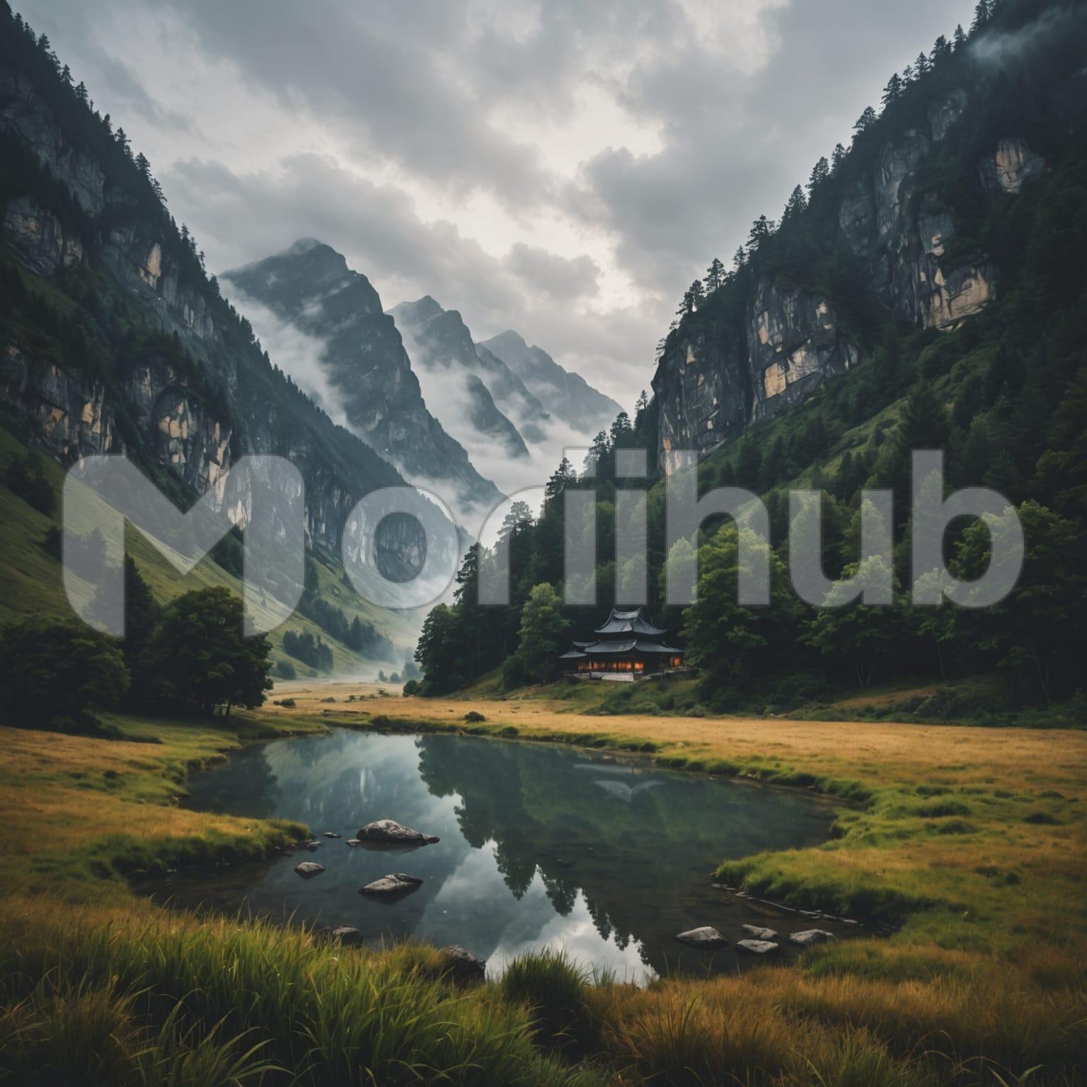 Mountains stand ahead, their slopes firm and unshifting beneath an overcast sky. The forms vary slightly, some more gradual, others defined, each holding steady without blur or motion. The sky above is thick with cloud, its tone flat and uninterrupted, casting an even light over the entire scene. There’s no shift in color or brightness—just the weight of the sky pressing down over the range. The mountains do not rise sharply but occupy the space with quiet certainty, forming a grounded horizon that stretches without drama or distraction.