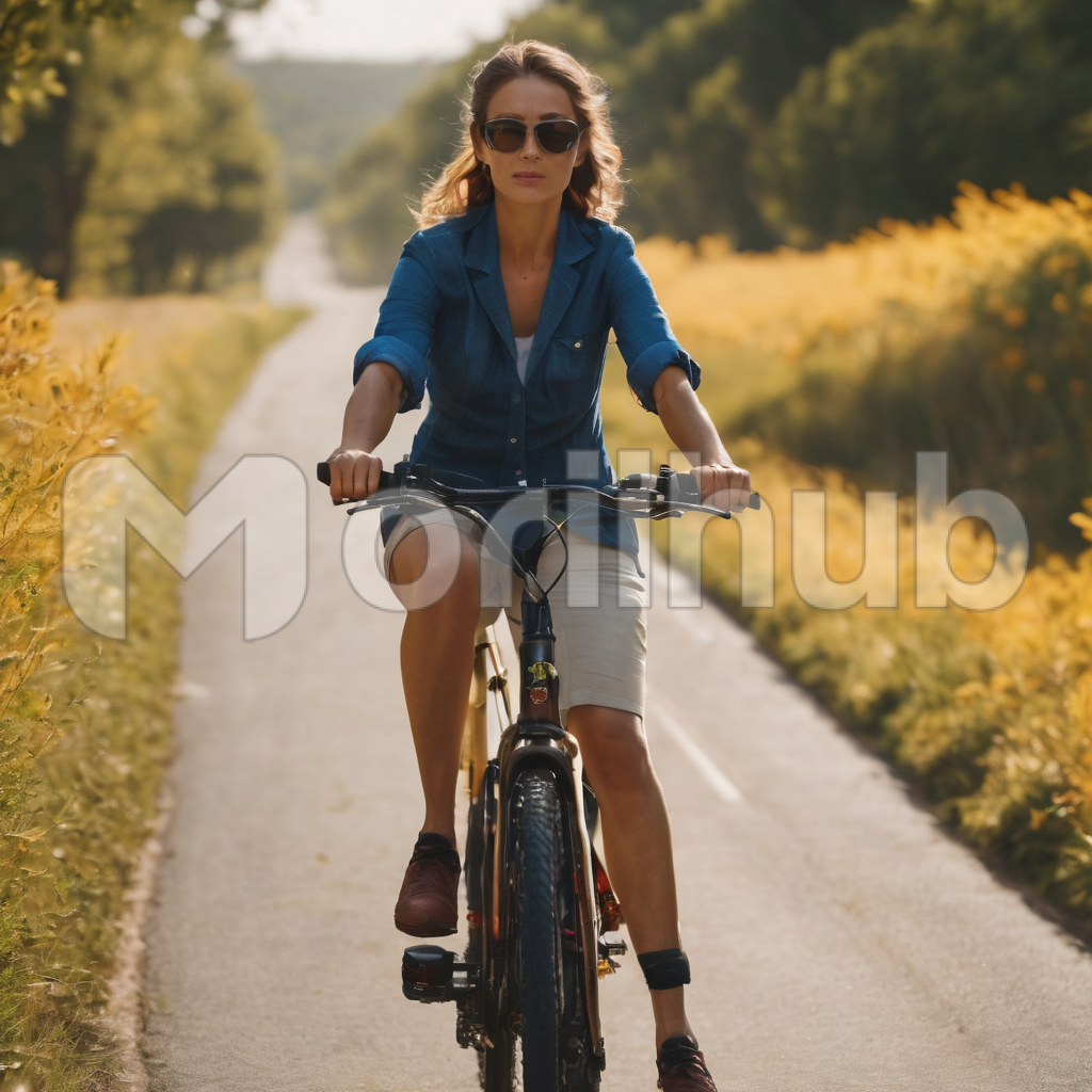 A mother embarks on a bike ride, exuding an air of cool confidence with her dark sunglasses. She effortlessly balances her bike, showcasing her multitasking prowess. The shades add an element of mystery and sophistication to her appearance, all while she sets a positive example of an active, stylish, and empowered woman for her family.