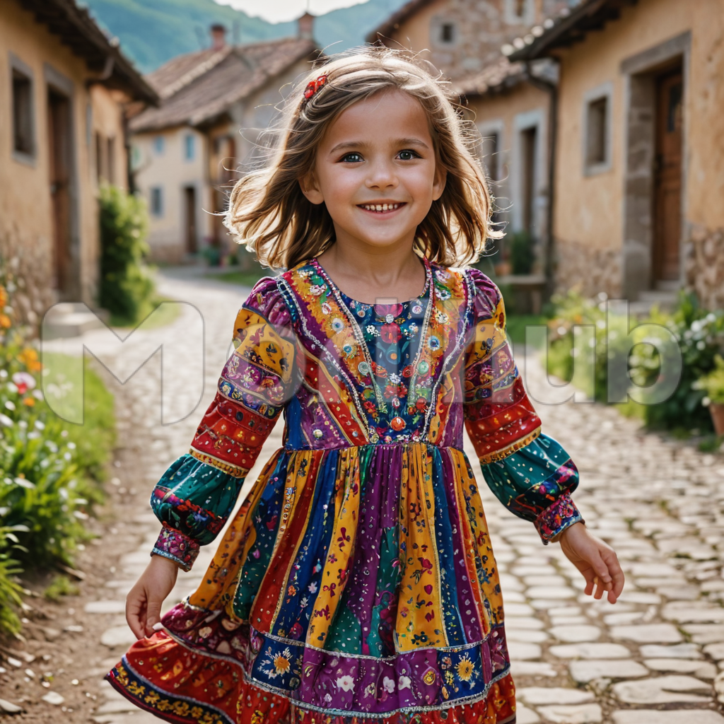 Amidst the quietude of the empty street, a cute little girl walks gracefully, her colorful gown a vivid contrast against the subdued surroundings. With each step, her curiosity fills the silence, her eyes wide with wonder as she explores the deserted thoroughfare. Despite the absence of bustling crowds, she finds joy in the simplicity of the moment, her innocent presence breathing life into the tranquil street.