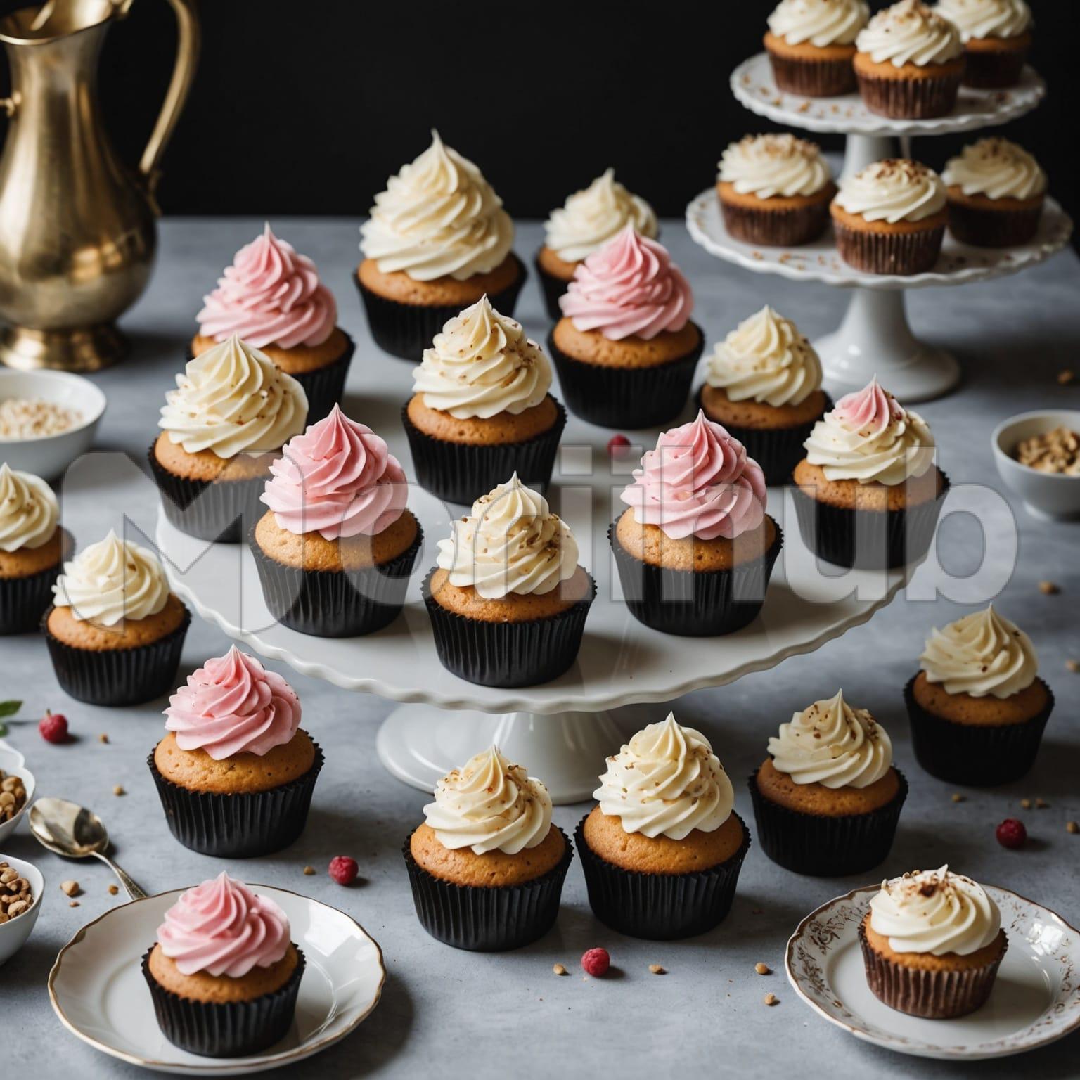 Cupcakes sit on the table, each topped with a swirl of frosting. The soft cake contrasts with the smooth, creamy topping, holding its shape with delicate ridges. The cupcakes are arranged neatly, their inviting appearance suggesting a delightful treat. The frosting’s texture looks light yet rich, enhancing the overall appeal. A sweet aroma lingers in the air, making the display even more tempting. Each cupcake stands ready to be enjoyed, a perfect balance of softness and sweetness.