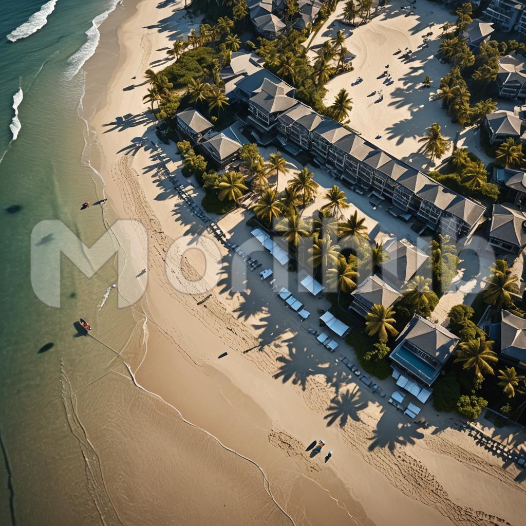 A resort nestled by the serene shores of a sun-kissed beach, offering a perfect blend of relaxation and adventure. Palm trees sway gently as turquoise waves kiss the golden sands. Guests indulge in luxury amenities, from seaside massages to exhilarating water sports. At sunset, the horizon paints a breathtaking canvas, sealing unforgettable moments of tranquility and joy.