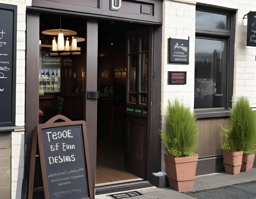 In the soft glow of the afternoon sun, the exterior of the pub exudes a welcoming charm. The facade, weathered and full of character, stands adorned with hanging flower pots, their vibrant green plants cascading delicately. The door, slightly ajar, hints at the convivial atmosphere within. Through the dimly lit interior, warm light spills onto the street, creating an inviting ambiance. The muffled sounds of laughter and clinking glasses escape into the open air, blending with the hum of the city. The pub, a haven of coziness, beckons passersby to step into its embrace. The combination of the dim interior glow and the lively foliage outside creates a scene of relaxed allure, promising a respite from the bustling world beyond its doors.