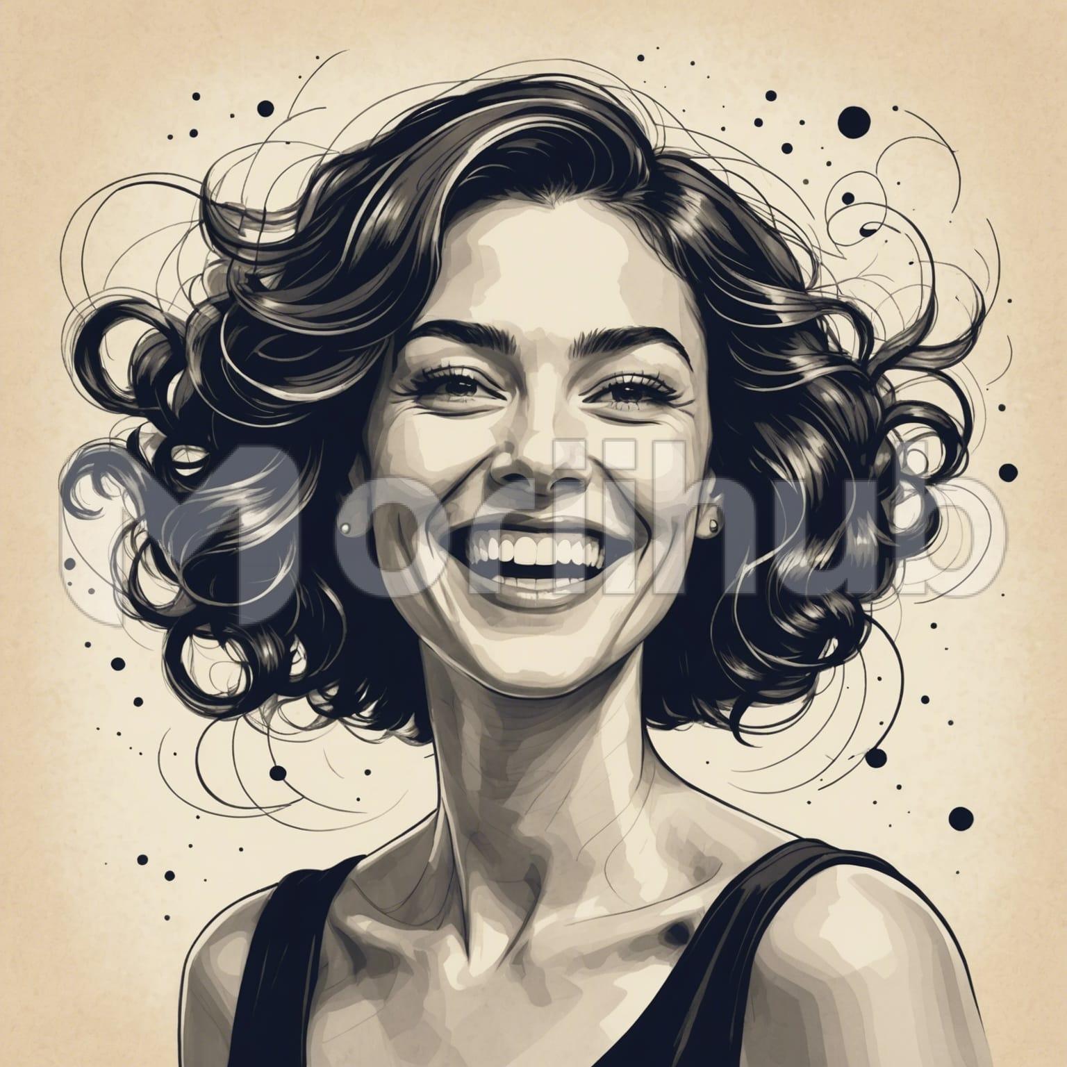 In the portrait, a woman exudes warmth and confidence, her short hair framing her face with effortless elegance. With a radiant smile, she captivates with her infectious joy, her eyes sparkling with positivity. Each line of her features speaks of resilience and charm, inviting admiration and connection. Against the backdrop of the canvas, her presence shines brightly, a testament to the beauty of inner strength and self-assurance. In this captivating portrayal, the woman’s smile becomes a beacon of optimism, illuminating the space with its genuine and uplifting glow.