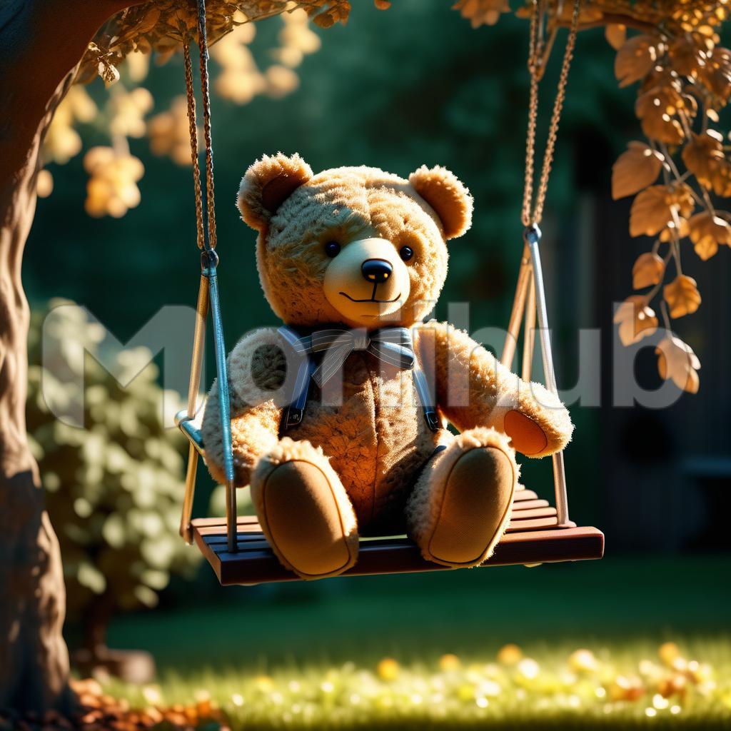 A teddy bear on a swing evokes a whimsical and nostalgic scene, blending childhood innocence with playful charm. The teddy, with its soft, plush fur and gentle expression, sways gently back and forth, creating a serene and endearing image. This delightful setup, often found in a garden or park, captures the essence of carefree joy and imagination. The swing’s rhythmic motion, coupled with the teddy’s comforting presence, evokes a sense of tranquility and nostalgia, reminiscent of simpler times and cherished memories of youth. It’s a heartwarming reminder of the joy and comfort that beloved toys can bring.