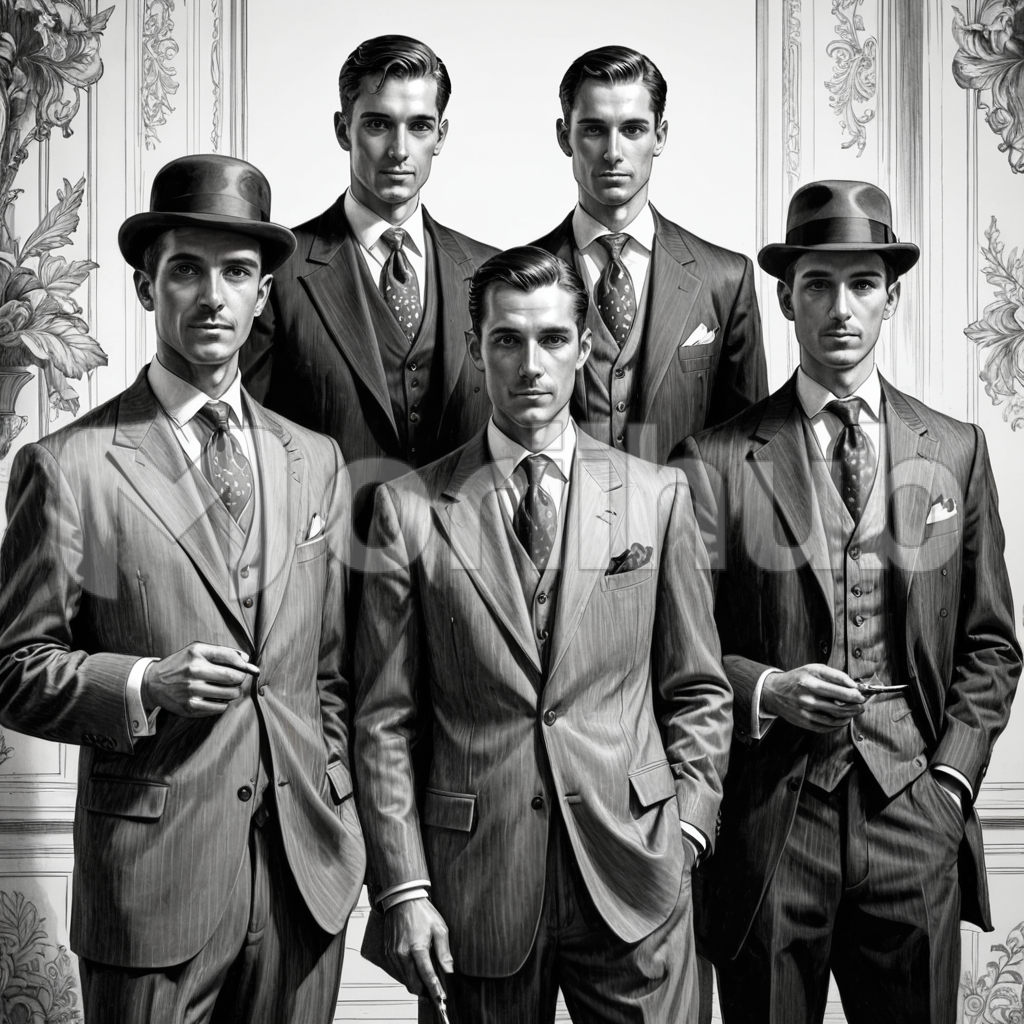 In a symphony of sophistication, a group of men stands resolute, adorned in finely tailored suits that speak of power and prestige. Each garment drapes flawlessly over their frames, accentuating their stature and authority. With confidence etched into their demeanor, they exude an air of professionalism and purpose. Their collective presence commands attention, a testament to their shared vision and ambition. Against the backdrop of urban elegance, they embody the epitome of success, their attire symbolizing the timeless allure of style and success.