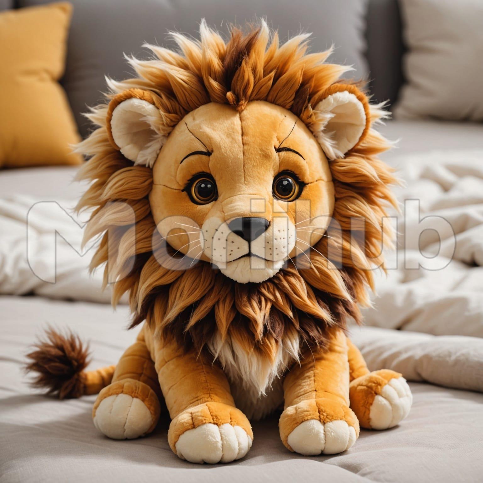 A plush lion toy rests on the bed, its fabric slightly worn from use. Its stitched features give it a gentle expression, with a soft mane framing its face. Its limbs lie relaxed, as if it was placed there with care. The fabric of the bed beneath it is smooth, undisturbed. The toy’s presence is quiet yet familiar, a small figure settled in its place. There is a sense of comfort in its stillness, a reminder of time spent in the hands of someone who cherishes it.