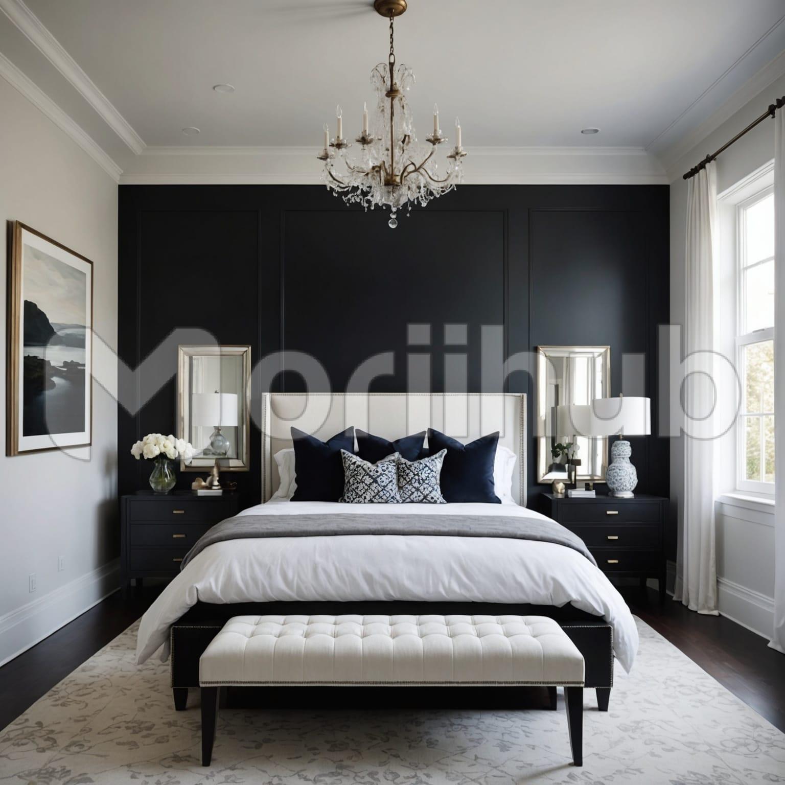 In the bedroom, the soft glow of natural light filters through curtains, casting a gentle ambiance over the tranquil space. On either side of the bed, lamps are seen turned off, stand beside flower plants, adding a touch of natural beauty to the room. Across from the bed, an art frame hangs on the wall, its presence adding a focal point of artistic expression. The room exudes a peaceful atmosphere, inviting relaxation and a sense of serenity amidst its simple yet elegant decor.