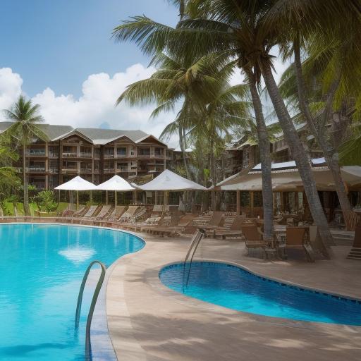 Nestled in the embrace of tranquility, the retreat poolside offers a haven of serenity beneath the azure sky. Tall, swaying palm trees frame the scene, their fronds whispering soothing secrets in the gentle breeze. The distant hum of nature harmonizes with the soft lapping of water against the pool’s edge, creating a symphony of relaxation. In the corner, majestic palm trees stand as silent sentinels, casting dappled shadows on the cool, tiled ground. Beyond, discreet lodgings for guests blend seamlessly with the natural landscape, providing a secluded escape. The pool, a crystalline oasis, beckons with its inviting azure depths, devoid of the usual hustle and bustle, allowing for undisturbed moments of reflection. Here, time stands still, and the world fades away, leaving only the whispers of leaves and the gentle ripples of the untouched pool.