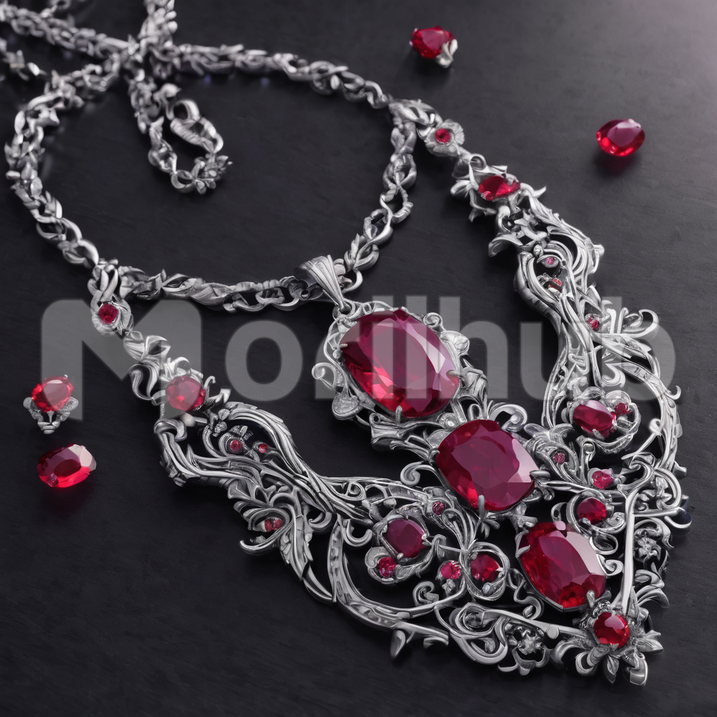 On a gleaming countertop, a ruby necklace lies in regal splendor. The fiery gems, set in delicate metalwork, glimmer with an ethereal allure, casting a spellbinding radiance. Each stone reflects the light with mesmerizing intensity, evoking a sense of opulence and sophistication. Its presence commands attention, a symbol of timeless beauty and luxury. It’s a treasure waiting to adorn, promising to bestow its wearer with an unmatched elegance and grace.
