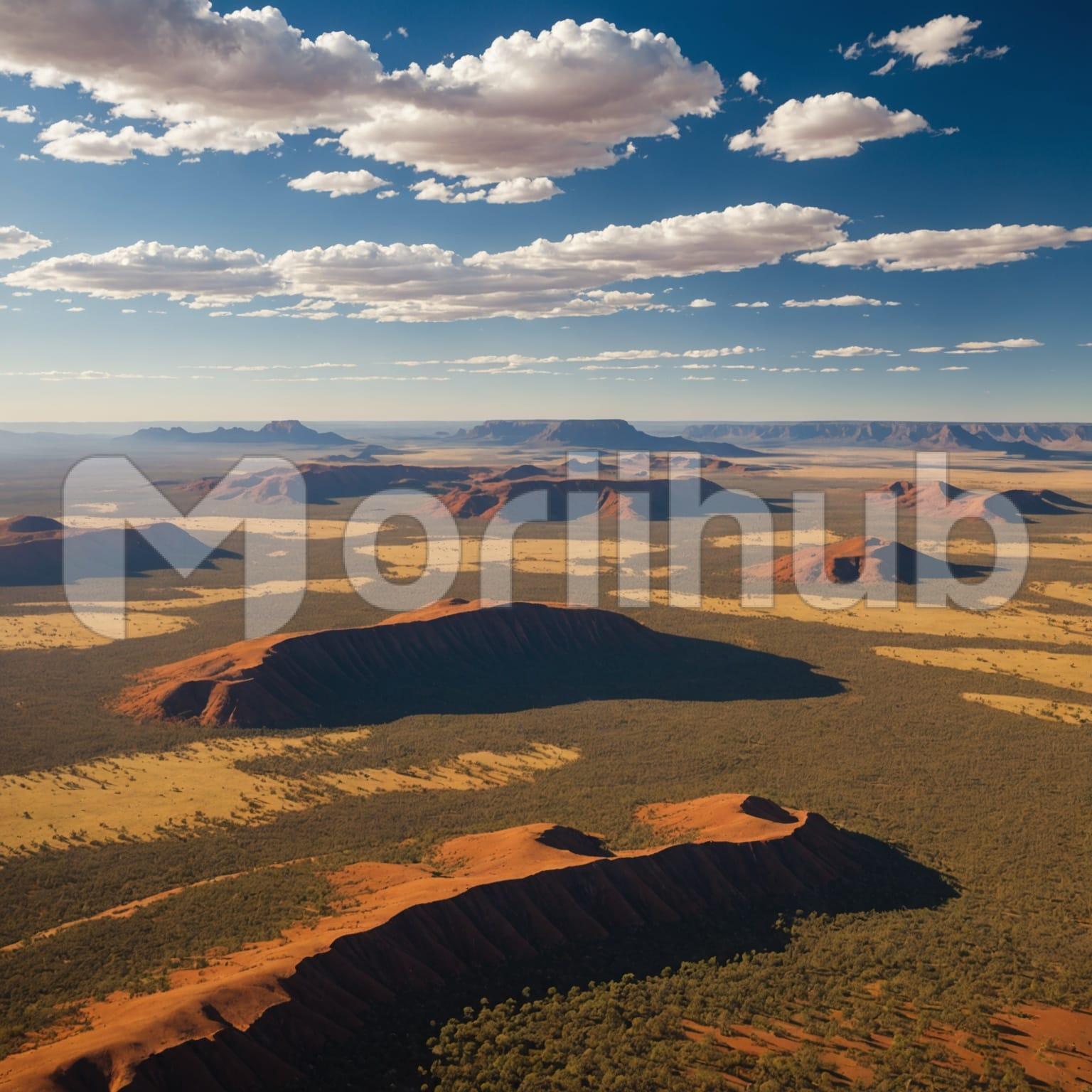 The arid landscape stretches wide, marked by dry soil and scattered rock. Peaks rise in the distance, rough-edged and quiet beneath the open sky. The air feels still, and the light falls across the terrain without obstruction. Earth tones define the scene, subdued and worn by time. The surface lies bare, with no signs of growth. The peaks stand far but clear, their shapes uneven. Nothing moves quickly here. The land waits, shaped by heat and wind, solid and weathered in every direction one turns.