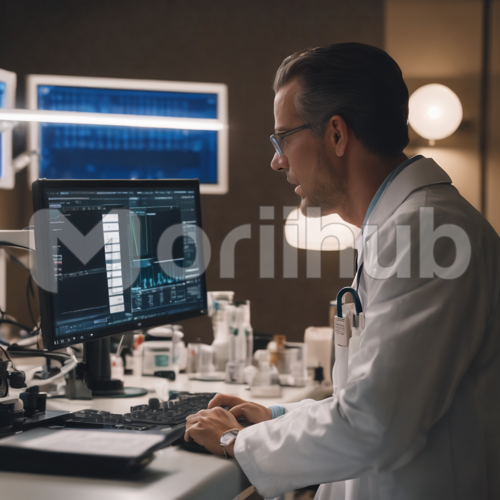 A diligent doctor reviews a patient’s vital signs with focused attention, using a computer interface to access medical data. The hum of technology merges with the precision of healthcare as the physician navigates digital charts and monitors, ensuring a comprehensive assessment. The fusion of medical expertise and technological tools exemplifies the modern approach to patient care, where the doctor’s scrutiny of digital metrics provides a nuanced understanding of the patient’s health status.