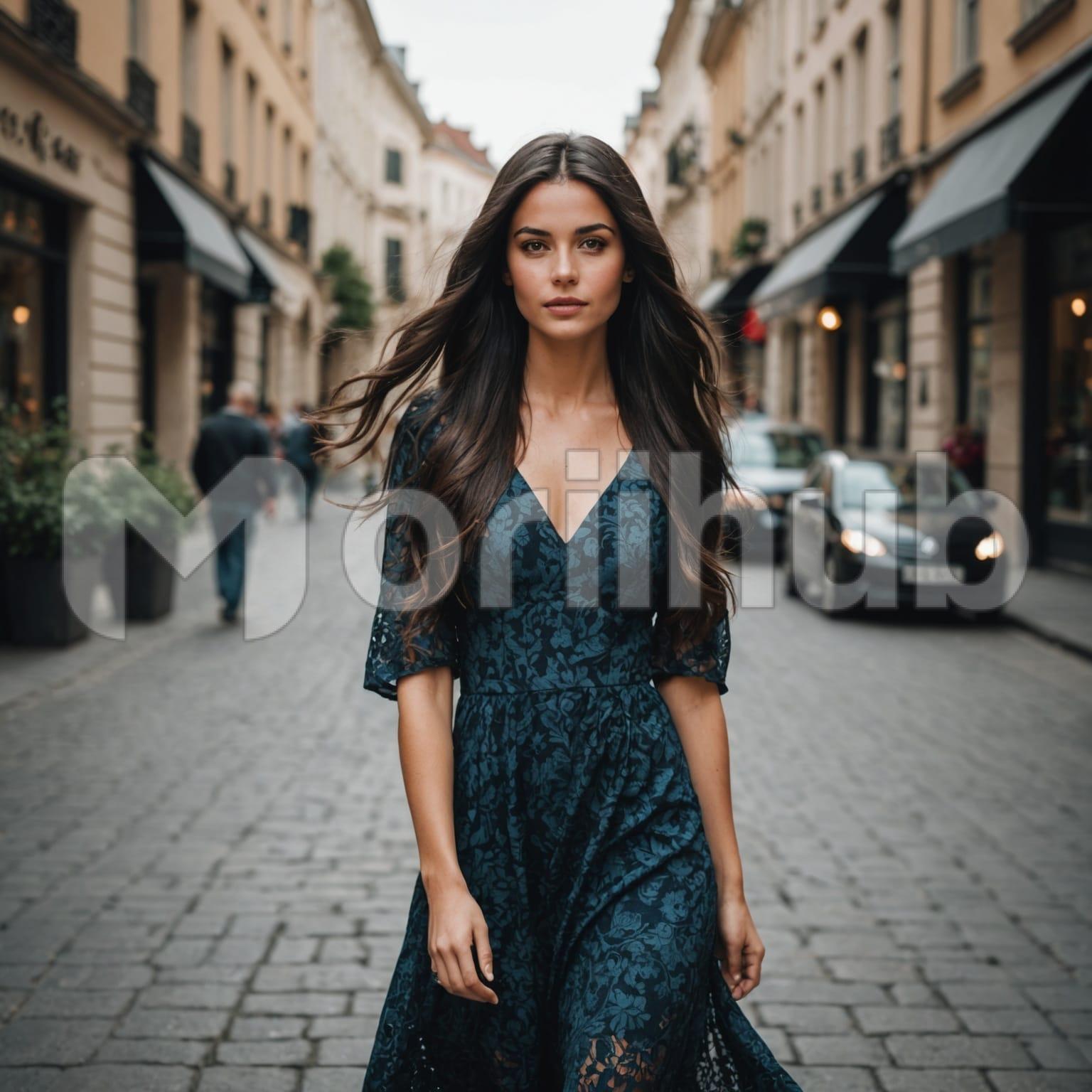 A stunning woman strides confidently down the street, her presence commanding attention effortlessly. Her long hair flows gracefully with each step, catching the light and adding a touch of elegance. Dressed in a chic outfit that perfectly complements her figure, she radiates style and poise. Her expressive eyes reflect a blend of determination and warmth, making her approachable yet intriguing. As she walks, she exudes confidence and sophistication, captivating the attention of passersby. The ordinary street transforms into an extraordinary scene, filled with admiration for her beauty and grace.