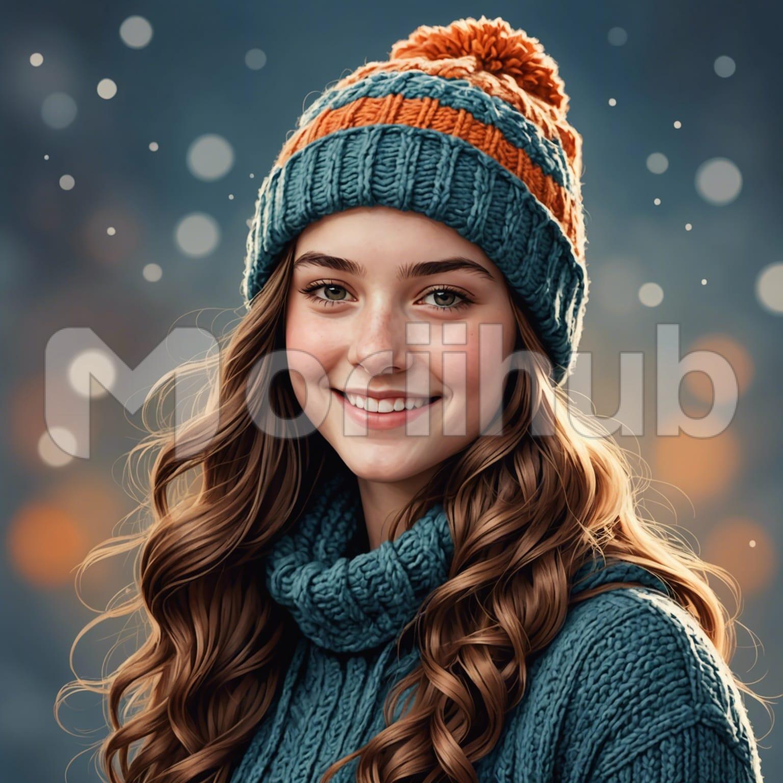 A stunning young woman graces the scene, her radiant smile illuminating the room as she dons cozy knitted sweaters and a matching hat. The warmth of her attire mirrors the glow in her eyes, exuding comfort and charm. Each stitch tells a story of craftsmanship and care, wrapping her in a cocoon of softness and style. With every joyful expression, she radiates a sense of contentment, embodying the essence of coziness and beauty. In her presence, winter’s chill melts away, leaving only warmth and delight in its wake.