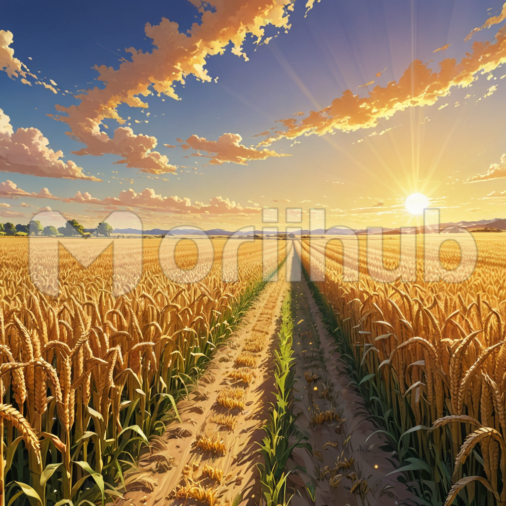 As the day wanes, a golden glow envelops the vast expanse of the wheat farm, painting the fields in hues of amber and ochre. The sun, a fiery orb, dips below the horizon, casting long shadows across the swaying stalks. Each blade of wheat dances in the evening breeze, a silent symphony in the fading light. The sky above is ablaze with vibrant colors, streaks of pink and orange stretching across the canvas of dusk. In this tranquil tableau, the beauty of nature’s bounty is illuminated by the soft embrace of twilight.