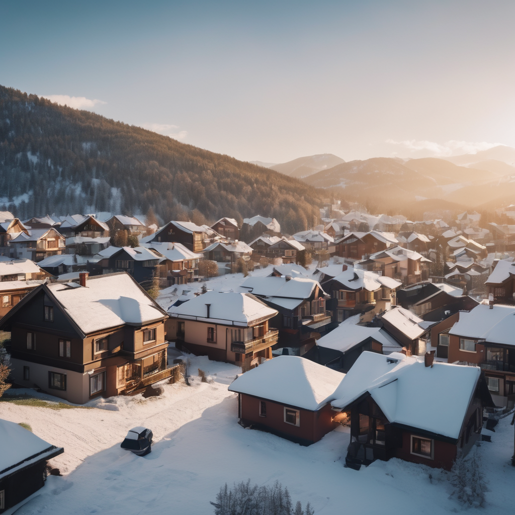 Nestled beneath a blanket of pristine snow, a quaint little town exudes a timeless charm. Each building wears a crown of glistening white, the roofs adorned with a delicate layer of frost. Chimneys puff gentle plumes of smoke into the crisp winter air, adding to the idyllic scene. Against the backdrop of snow-covered streets, the town stands as a picture-perfect tableau, a haven of warmth and tranquility amidst the winter’s chill.