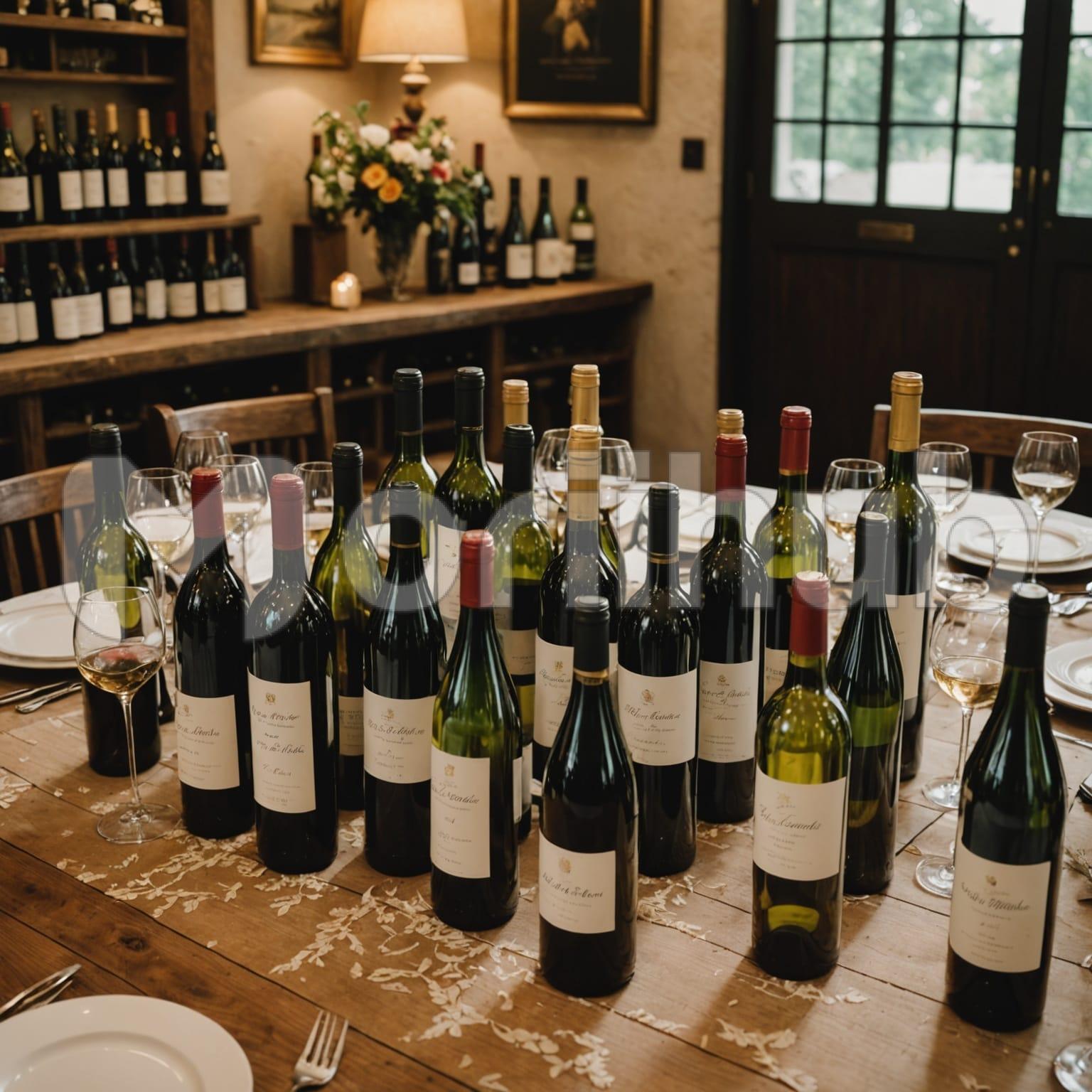 Bottles of wine stand arranged on a table, their tall forms lending a sense of order to the scene. Glass surfaces catch faint highlights, tracing lines along their smooth shapes. Some are grouped closely, others spaced with care, creating a natural rhythm across the tabletop. Labels rest in quiet detail, hinting at origin and character within. Though unopened, each bottle carries a suggestion of richness and depth, waiting to be revealed. Together, they form a still composition, understated yet carrying quiet sophistication and presence.