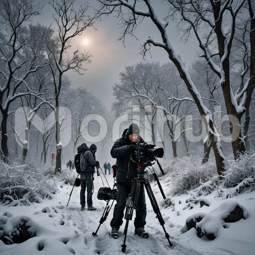 In the chill of winter, the camera man stands resilient, bundled in layers against the biting cold. His breath mists the air as he adjusts lenses, capturing the stark beauty of snow-covered landscapes. With gloved hands steady on the equipment, he braves icy winds to preserve moments of frosty stillness and fleeting sunlight, embodying dedication to his craft amidst nature’s serene yet challenging embrace.