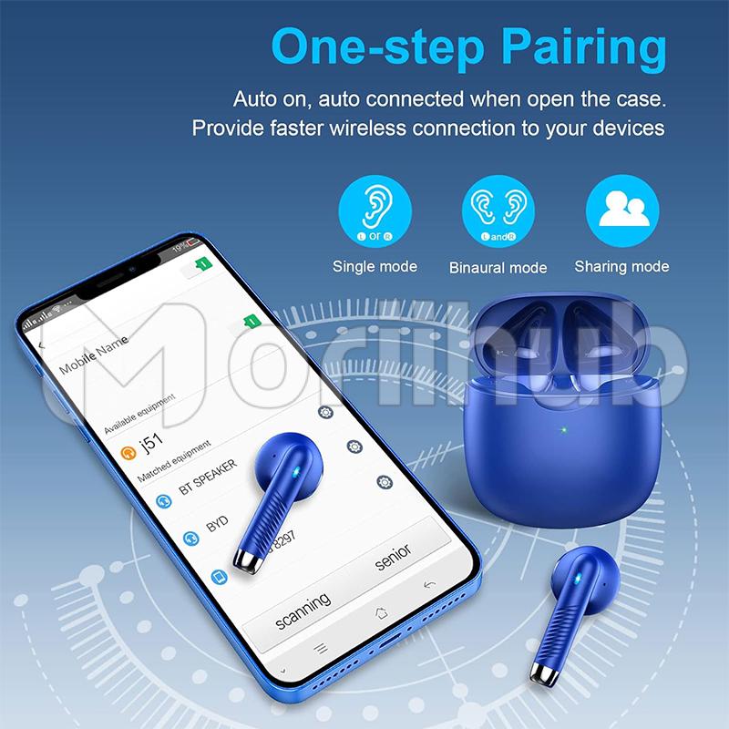 Bluetooth 5.3, effortless pairing: the advanced Bluetooth 5.3 technology delivers a stable, low-latency wireless connection for high-quality sound(music or call). Also, the Bluetooth earbuds can connect automatically to the Bluetooth of your mobile phone when you open the charging box, avoiding complicated operations and saving waiting time.