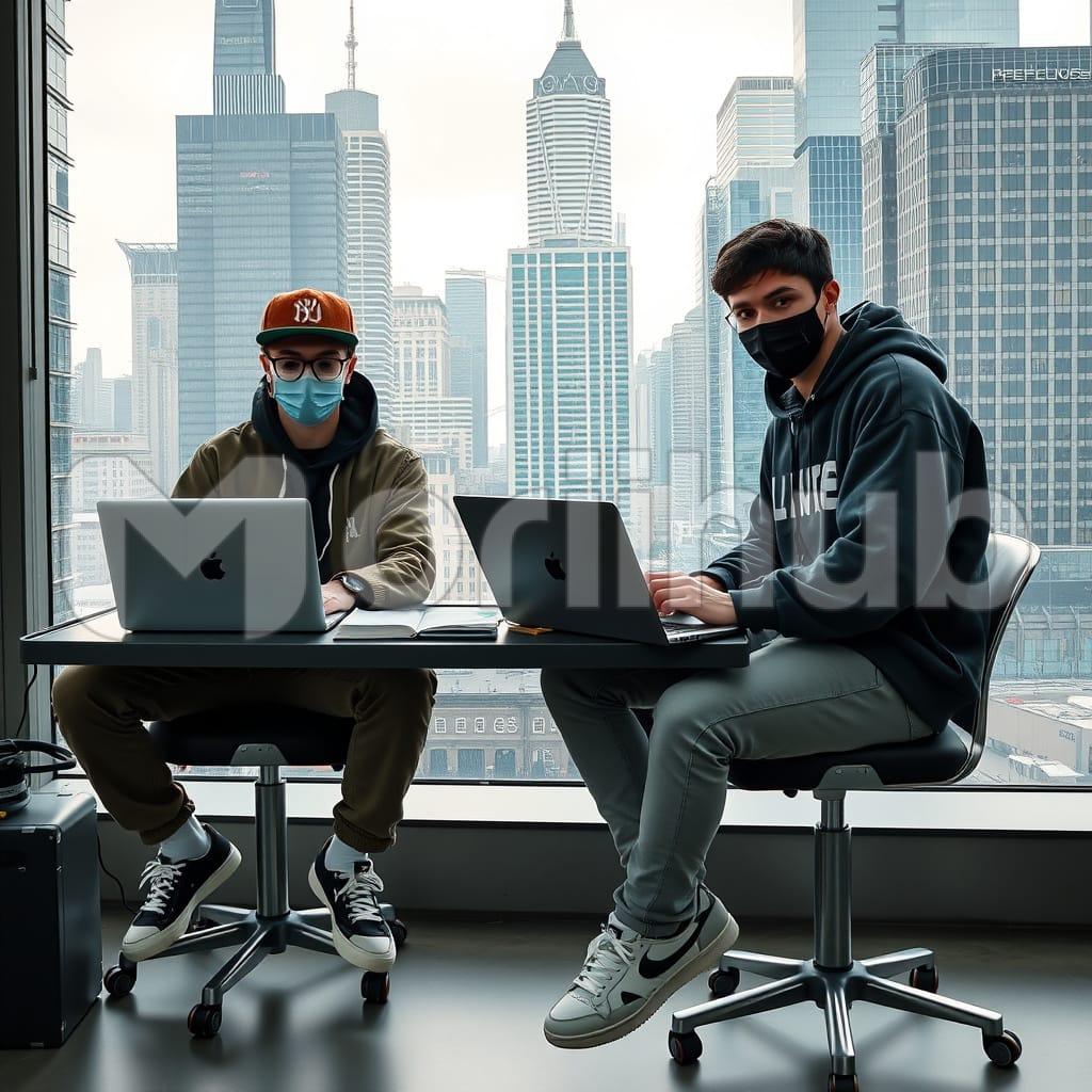 Two young programmers sit together, laptops open, brainstorming solutions for a new app. One suggests using machine learning for data analysis, while the other proposes a user-friendly interface. They debate, exchange ideas, and sketch out their concepts. Their energy and collaboration drive them closer to building something innovative and impactful.