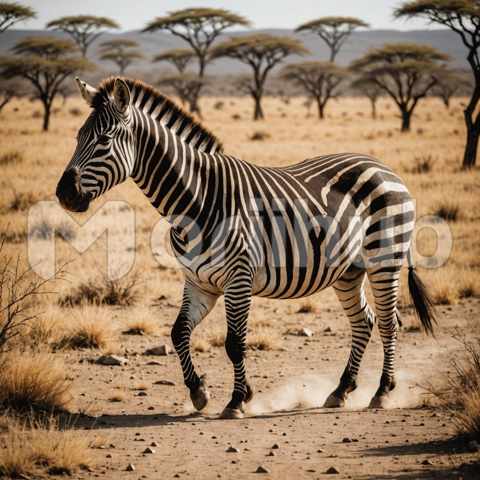 A zebra moves steadily across the wide savannah, its striped coat forming graceful contrasts beneath the open sky. The land stretches endlessly around it, vast and calm under the warm, unhurried breeze. Each step is measured, purposeful, and sure, echoing the quiet rhythm of the wild. Distant sounds of nature drift softly through the open air, wrapping the moment in stillness. The zebra pauses briefly, then continues on—a living symbol of balance, freedom, and endurance beneath the boundless horizon.